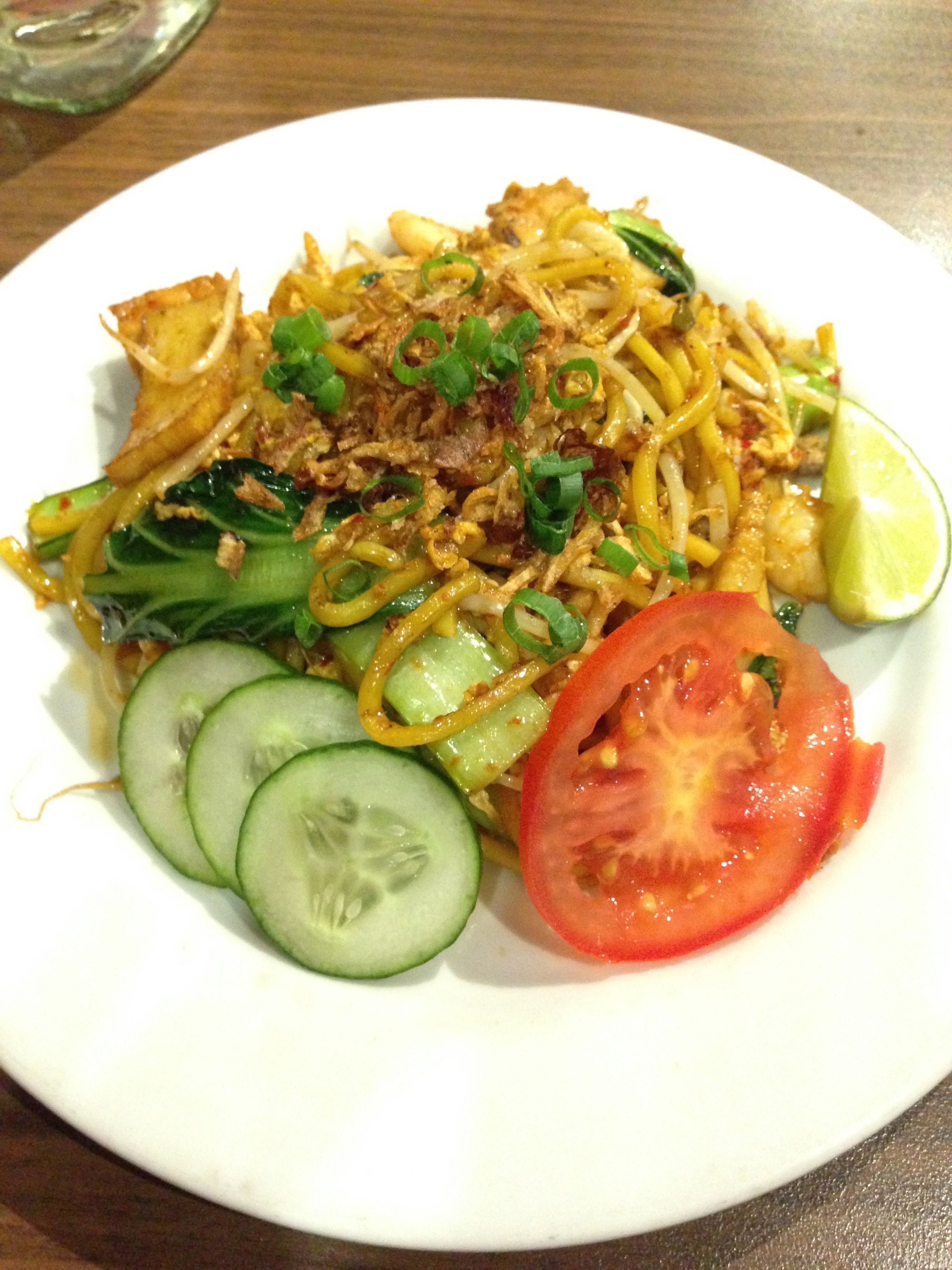 Hokkein noodles that were served el dente. I was hoping for a more egg noodle which is slightly ticker and softer. The mee goreng had nice pieces of tofu and fish cakes. Good amount od vegetables with choi sum and bean sprouts. It is also more refreshing when you add line to it, which comes on the side, it heightens the taste. Also nice to have a nice piece of tomatoe and cucumber to tame down the spice when you need it. Good amount of prawns and overall nice flavour.