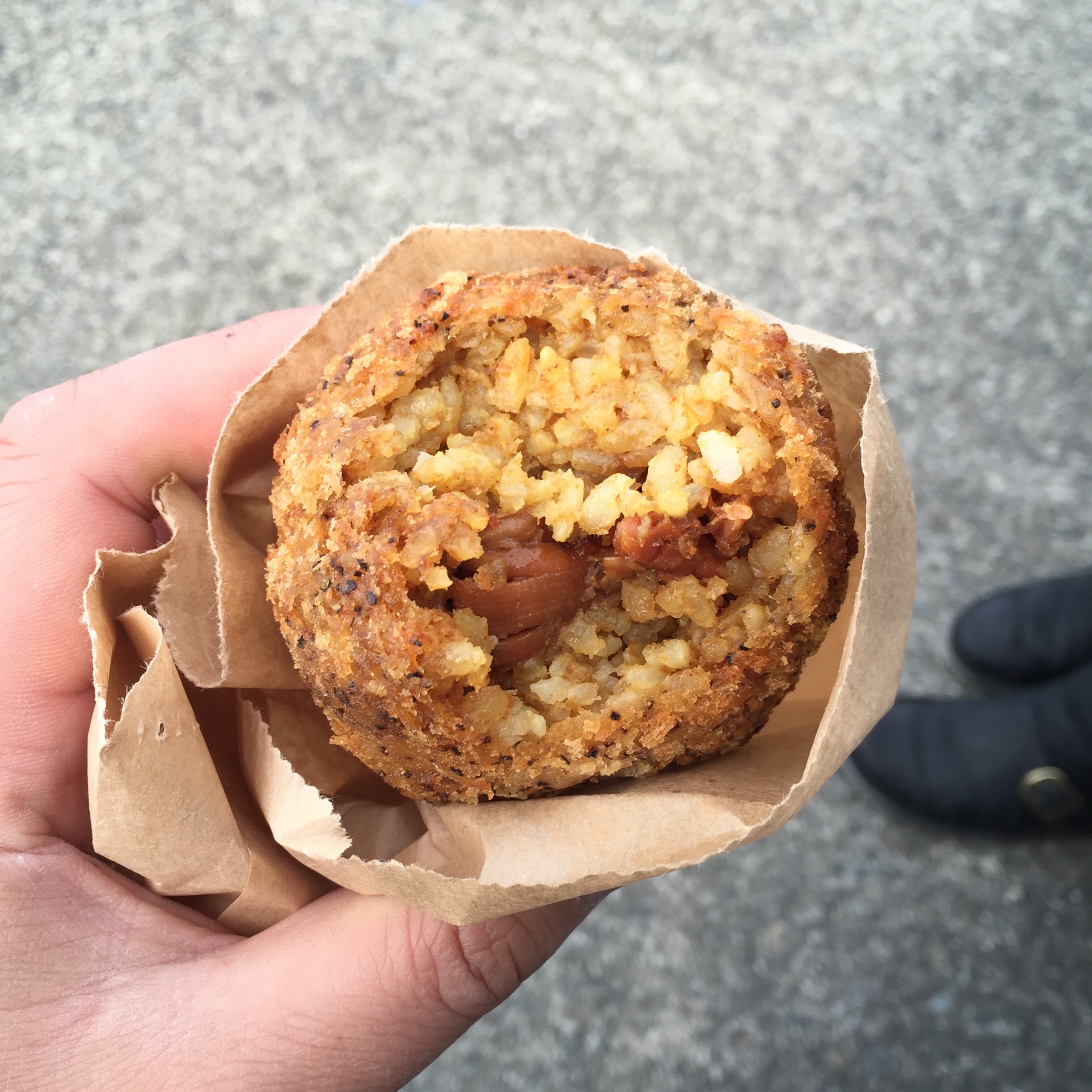 I do not think this is a typical Japanese food. It was teriyaki chicken with curried rice and then crumbed and deep fried. It was rather intriguing so I decided to try one. Unfortunately it was not temperature hot. The outer skin was crisp, the rice was nicely flavoured and the chicken was nice. Overall not bad and nothing i have seen at the other Sushi Bi outlets.