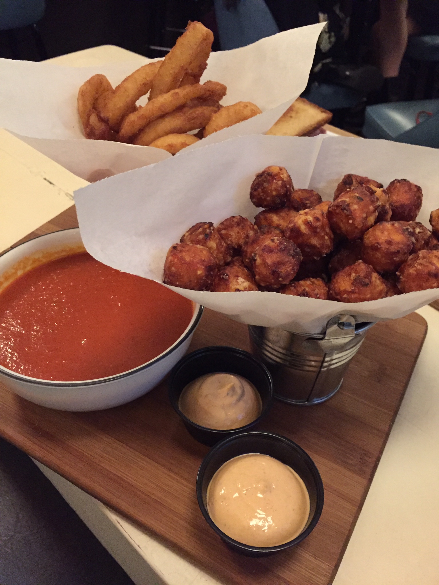 So I added the truffle oil to my grilled cheese as I love truffle oil. The grilled cheese was of good size and also came with three different types of olives on the side, which was nice. The grilled cheese was crisp and overall was not bad. I couldn’t really taste the different cheeses in the sandwich but I could taste and smell the truffle oil which was nice and fragrant