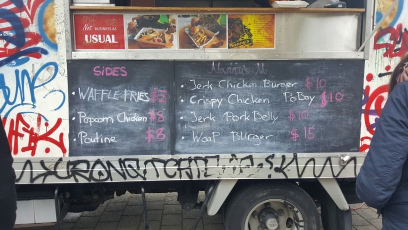 I was lucky enough to spot on Facebook that Nanny’s Food Truck was doing a tester run on their WOAP (Wellington on a Plate) burger for 2016. As I do not work in the city I organised Pepper Potts to go first and order and then my workmate and I arrived five minutes before the order was ready.