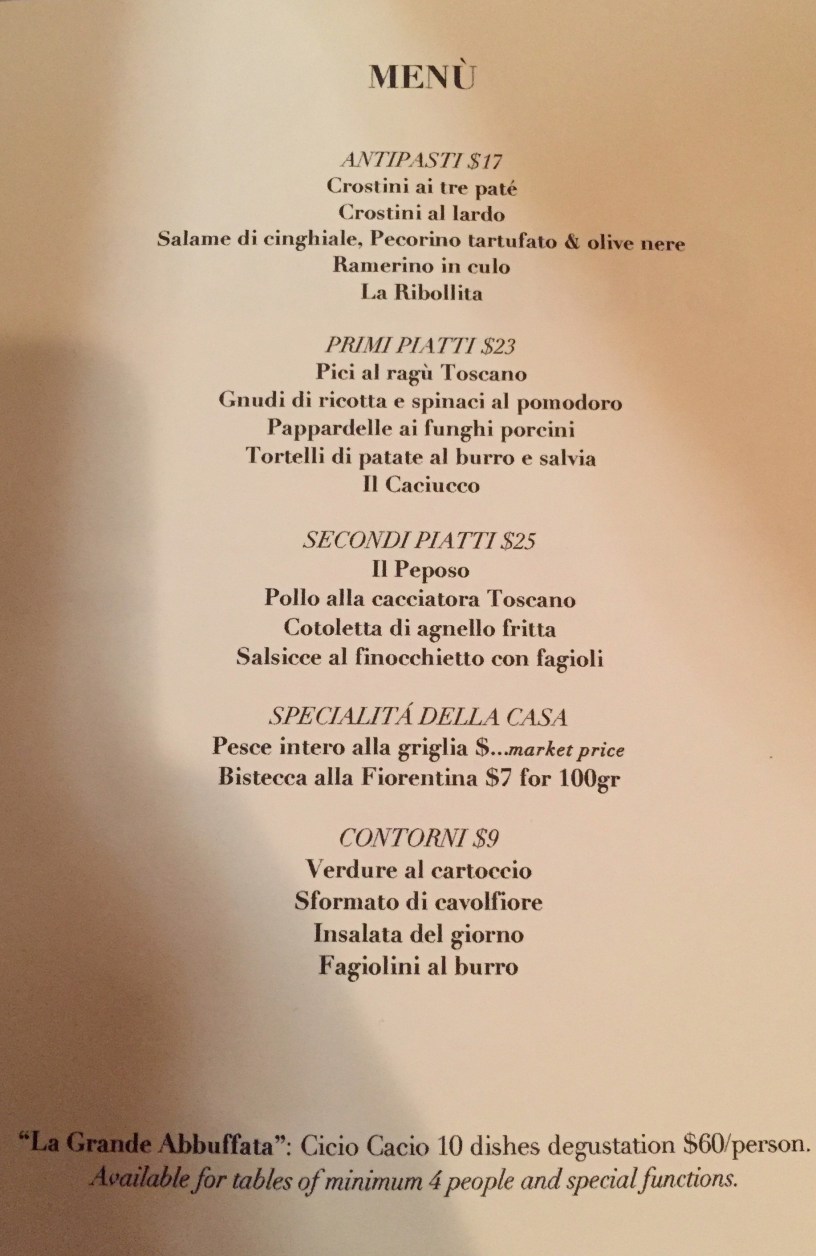 Overall yet another great dinning experience a Cicio Cacio Osteria. The service was fantastic and was great to see the menu in Italian and the servers translating the menu for you. This is one of the only restaurants where you still get free bread. We ended up having two servings, one at the beginning and another one I ordered when my seafood dish arrived. MacGayver was very pleased to come here for dinner. I originally wanted the Bistecca alla Fioentina. However, MacGayver had went to Cicio Cacio Osteria sister restaurant Franziska, the previous night where he ordered the steak. He did not want steak two nights in a row. So I will need to go back one day and give it a try.