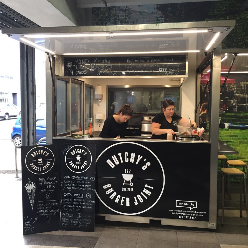 Was doing some shopping in Moore Wilsons and Dutchy’s Burger Joint were in one of the Food Pods. Pepper Potts had told me about these guys last week and I was interested to give them a try. The conversation came up regarding them because someone at work asked me who now makes the best burger in Wellington. I literally had no idea anymore sense Nanny’s Food Truck had left the scene and Pepper Potts suggested them.