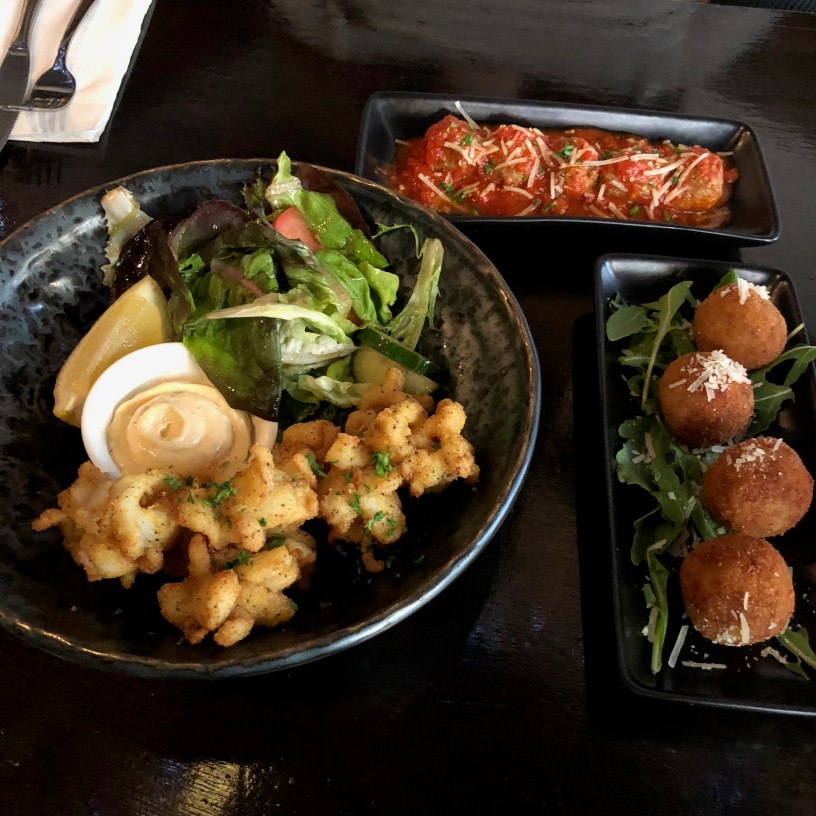 I really liked these arancini balls. the inside was nice and smooth and had a good flavour. It was had to taste the different elements in the balls, but they were cooked really nicely and were nicely seasoned with parmesan.