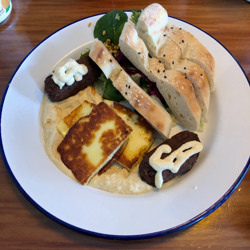 This was a nice dish with three big slices of halloumi. The halloumi was perfectly cooked and I loved the generous amount of hummus underneath the cheese. The hummus was good with a nice tahini flavour mixed in. The felafel was nice and crisp on the outside and green on the inside but due to the number of herbs mixed into the falafel mixture. The Turkish bread was good and the salad was nice and refreshing. Overall the dish was really good and a good sample plate if you want to try different things.