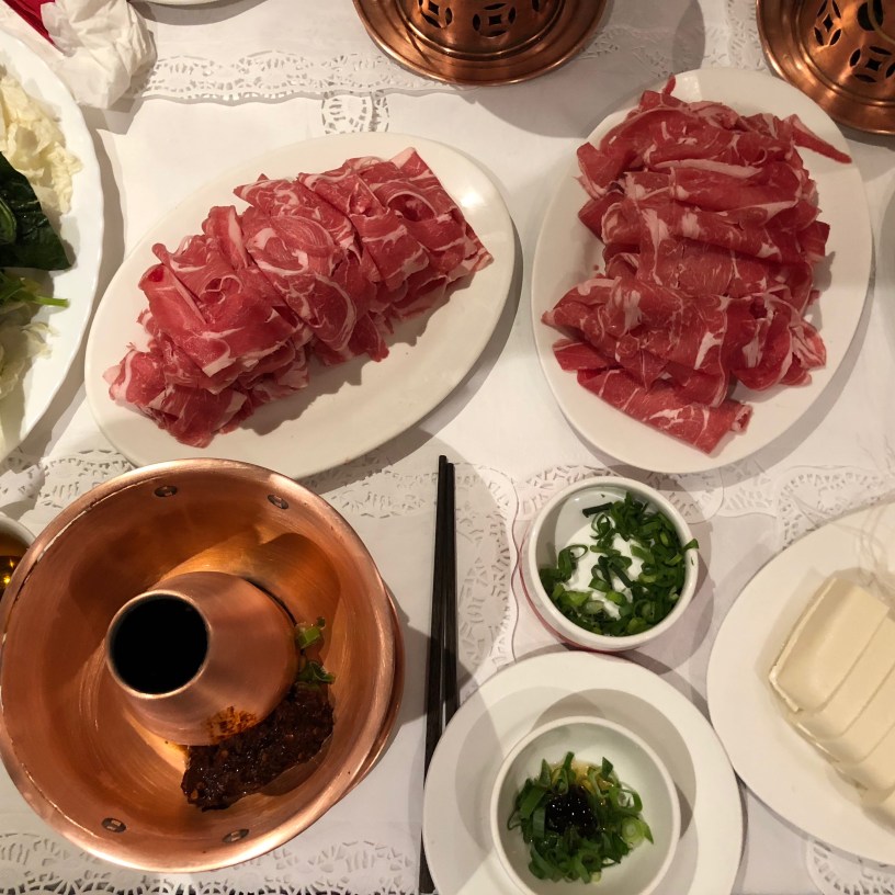 At Peking House, you get an individual hot pot with hot water and some herbs for $29. If you want to add spice paste to it (which I did) you pay an extra $3. With the Hot Pot you get a sauce, which I didn’t have because it had peanuts in it. So instead I made a sauce of sesame oil, oyster sauce, vinegar and spring onions. With the All you can eat, you get lamb, surimi, meatballs, tripe, tofu, vermicelli, spinach, lettuce and Chinese cabbage. I mostly went with the lamb, tripe, and surimi as it had the most flavour and went well with my sauce. The vegetables and vermicelli were hard to eat because of the chilli paste I had in my Hot Pot as it made these ingredients really spicy and too hard to eat.