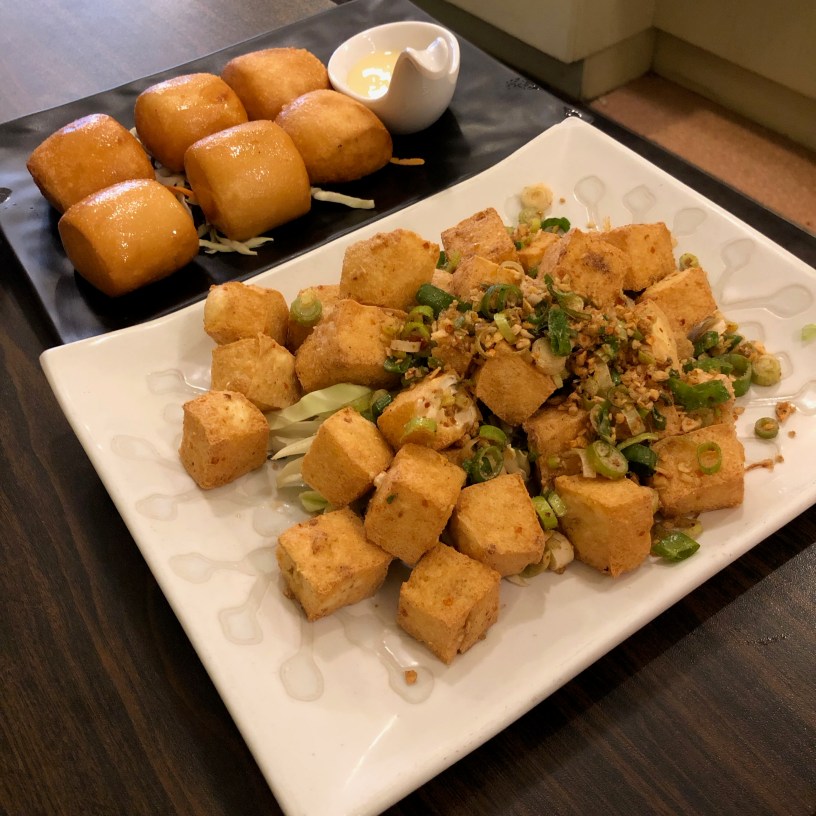 I really liked this dish. However, it did need rice as it was quite salty on its own. The tofu was cut to a good size and I loved the spice kick in the dish. On the bottom was some raw cabbage. I suspect it was just a garnish or to elevate the height of the dish but it was really nice with the tofu, but lettuce would have been better with the tofu.