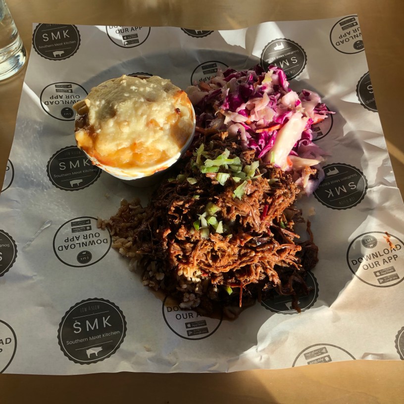 I managed to find SMK an American styled BBQ eatery that also has a joint in Rotorua interestingly enough. I decided just to order some food beef from the pit. For some reason, I thought that the beef would come in slices but it arrived pulled and it was sitting on top of some rice. Also, there was a generous amount slaw and a smoked mac’n’cheese.