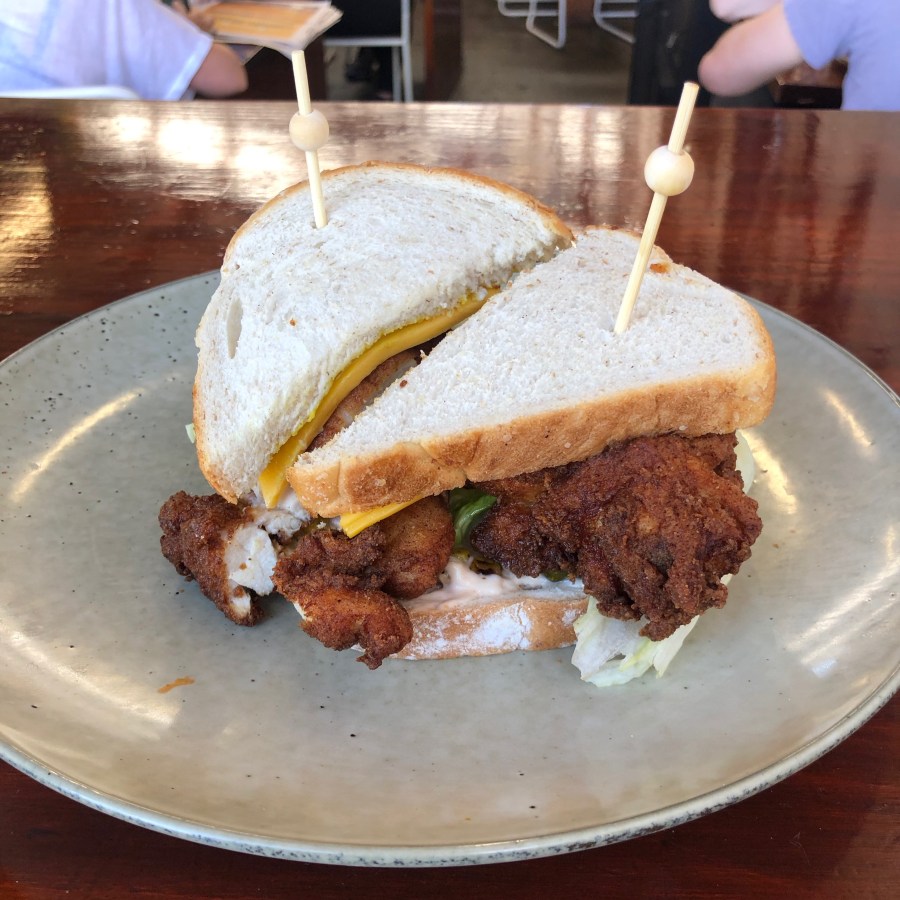 I decided to have the Fried Chicken Sandwich. I actually thought I was going to get a burger bun, like an American Fried Chicken Sandwich but it was done with two slices of toasted white bread. However, aesthetic is not really an issue it is about how it tastes. Firstly the bread was toasted and seemed like it was house baked. Inside the sandwich was two pieces of fried chickens, pickles, mustard, cheese, corn, a mayo based sauce and a lot of iceberg lettuce. I have to say it was quite tricky to eat, but who gives a fuck when the sandwich is so damn good. The use of the mustard and the amount of lettuce brought this burger together. It was just so fuck’in good.