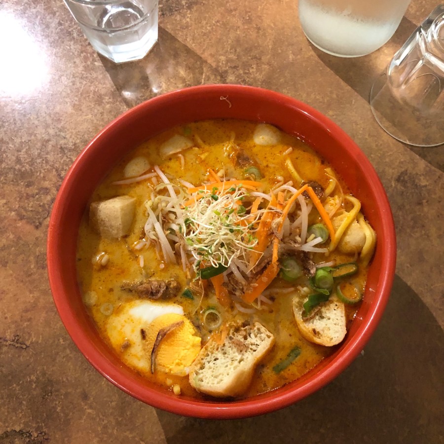 The laksa overall, was good. I loved the soup, which had a few curry leaves in there and also loved the spice. It was nice and creamy and had quite a depth to it. The egg noodles and bean sprouts were good, but not a fan of the rice noodles that were also in there. The seafood was not visible but when moving things around with my soup I found that they were at the bottom. Overall a good Curry Laksa. The roti was also good, freshly made to order and had a nice crispness and flavour to it.