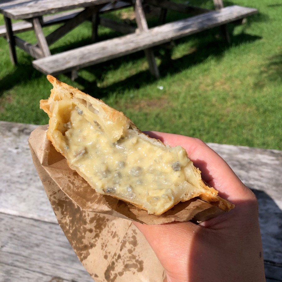 The next stop was Houhora Honey Bees. It is more obvious that they sell paua pies as they have big sandwich boards on the roadside. I saw it going up to Cape Reinga and decided to give it a try on the way down. Here the pie is $10, so I expected a better pie. Here the pastry is very different to your typical pie crust. It is less flakey and more short pastry-based. It is also a lot thinner. The paua smell is not as identifiable in this pie. However, there is a lot more paua in this pie as you can see the little bits in the filling.