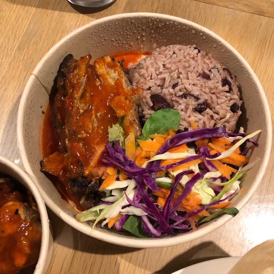 However, the winner of the night was the goat curry. The flavours in the curry were so good and the goat was really tender. I really loved the depth of the flavours and the creaminess of the sauce. In all the dishes. The salad was really nice and not just from a bag. The rice was even better though with the beans and peas. It went really well with the curry and the jerk meats.