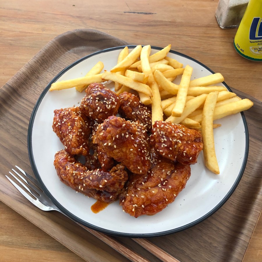 When my chicken arrived, I was surprised at how much was on the plate. So much, that it could feed two people, if you decided to order some extra fries or rice. Firstly the fries were really good. The oil was fresh, cooked perfectly and nicely seasoned. Also, the fries went really well with the leftover yangnyeom sauce. The Freid Chicken was a mixture of dark meat with bones and white meat without bones. I honestly, have to say the dark meat with bones tasted better and it was crunchier. The chicken was juicy and tender and the sauce was so good with the fried chicken. The sauce didn’t register on my spice tolerance nor was it too sweet. Overall really good chicken.