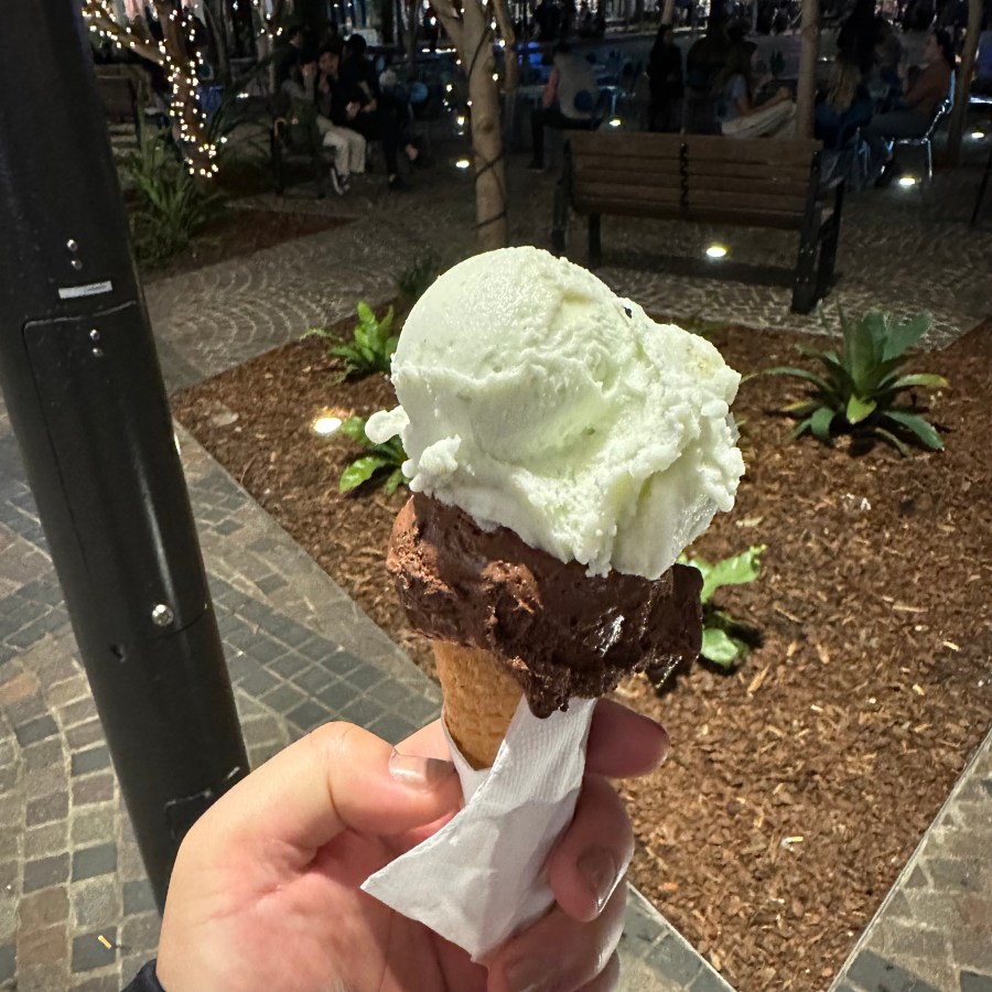 Even though there can be a line, it moves pretty fast. Like most places, you can now try flavours, which I decided not to and instead just try Pandan and Coconut Gelato and Chocolate Fondant on a cone. The Chocolate Fondant was quite rich and had a full chocolate flavour and, thankfully, was at the bottom of the two scoops of gelato I ordered. The top scoop, Coconut and Pandan, was so delicious. Man, I wish I could get this at home as I would always order it. If you like coconut, this is the one for you. The cone was also nice and fresh and had a nice honeycomb flavour.