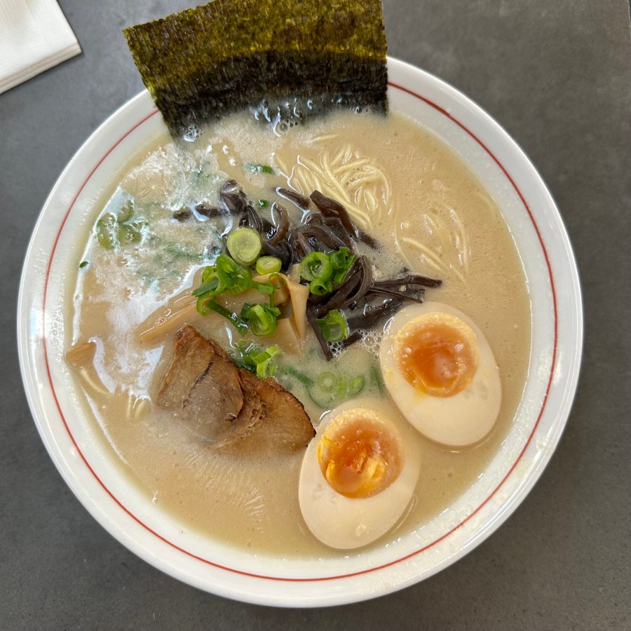 I ordered the White Tonkotsu Ramen with an Egg and some Karaage Chicken. The Chicken came first with a dipping sauce; this is potentially the best Karaage Chicken I have had. It was so crisp with this nicely seasoned light batter, and the chicken was perfectly cooked. The dipping sauce had a nice little kick and complimented the chicken very well.