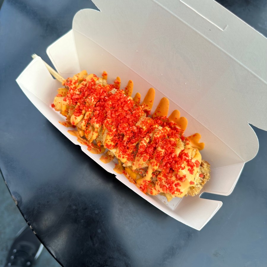 I decided to order the “most popular Corn Dog, which was the Potato Dog that had cubes of potato-wrapped corn dog with two hands dirty sauce and Cheetos sprinkled on top. Inside my corn dog, I decided to go with the half mozzarella and sausage.