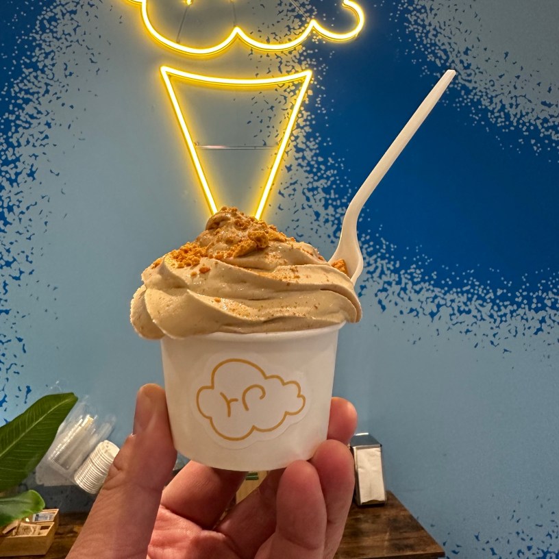 On the sign, this ice cream shop serves soft serve ice cream, with hokey pokey inside and then sprinkles it on top. The soft serve comes in different flavours, including; Vanilla, Coffee, and Mixed berries and also offers a pavlova sundae version. I decided to go with the coffee version, and everyone else went with the vanilla version.
