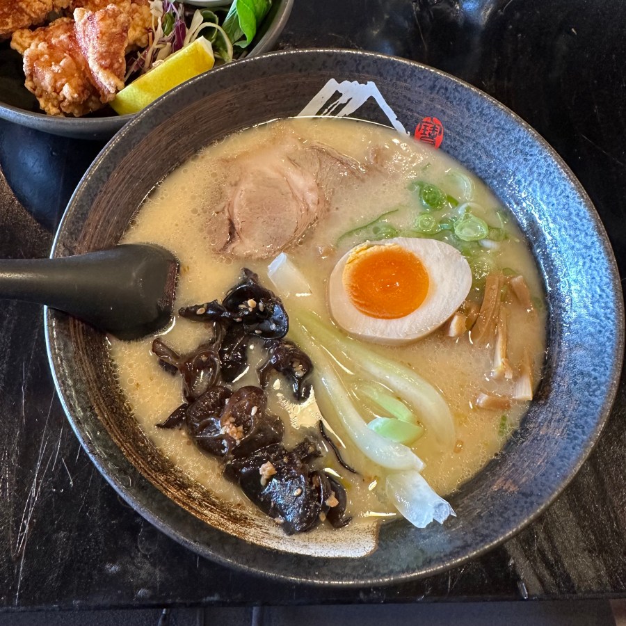 I stuck to the basics and went for the Tonkotsu Ramen and some Karaage Chicken. My typical ramen order. The food came out surprisingly fast, and I was surprised to see how big the karaage chicken pieces were. However, I decided to start with the ramen, which was good. I loved the flavour in the soup, and so rich in flavour. The ramen noodles were so good, and I was happy to slurp away. There was a nice amount of wood ear fungus, bamboo shoots, bok choy, spring onions, egg and a piece of pork charshu. The wood ear was really nice; not sure what they did, but maybe it was because of the soup, but it was good. The charshu was also nice, and the egg was done perfectly. A great bowl of ramen.