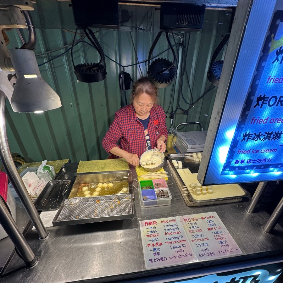 Next was trying some milk cubes from a lovely vendor. Cooked fresh to order, she even made the batter in front of me. It’s interesting how she cut the milk cubes into squares, and then after deep frying, they turn round. Overall, it is a lovely little snack, not too sweet and relatively easy to eat after letting it cool down.