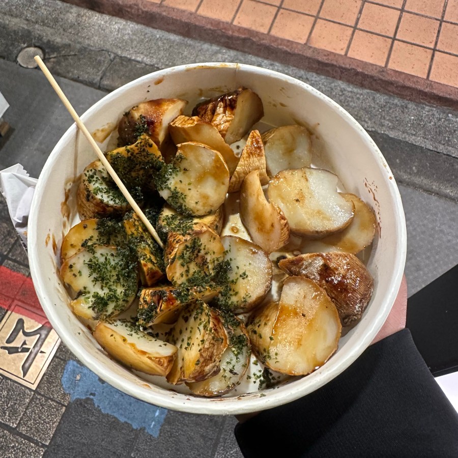 Mushrooms were next on the list. The longest line of them all. These chunky mushrooms are grilled and brushed with this teriyaki sauce. I did find it interesting that the person did weigh the mushrooms post-cutting them to ensure they were exact. I got seaweed and rose salt sprinkled on top of mine, and overall, it was an adorable dish. I didn’t end up eating all of them as they were really filling, and I wanted to try other things.