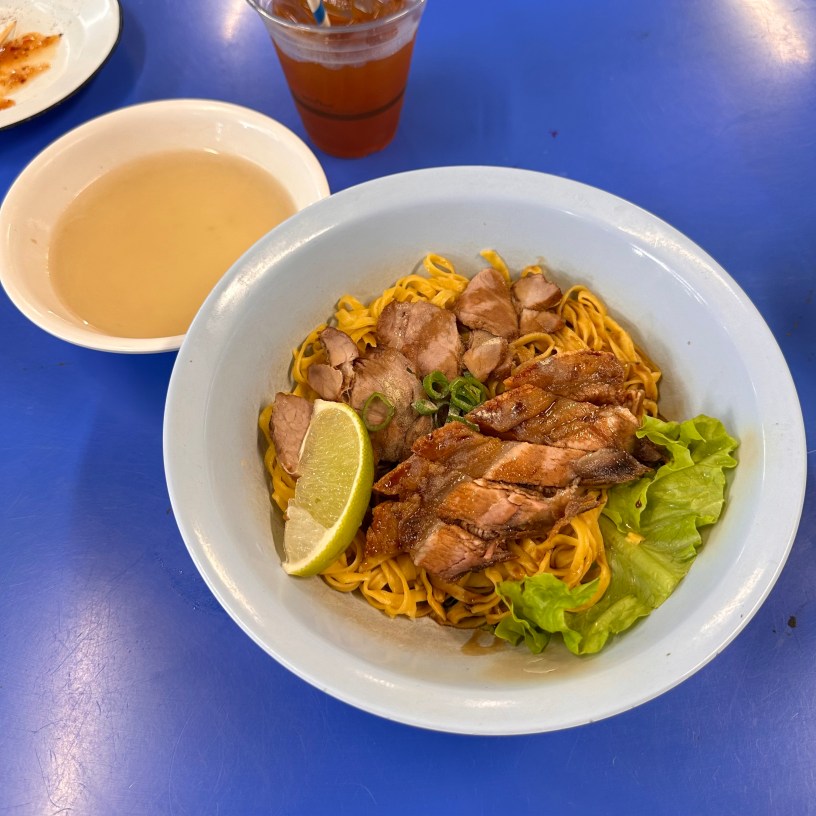 However, I made the mistake of visiting during lunchtime and discovered they offer a limited menu, primarily consisting of noodle dishes. Undeterred, I ordered their Crispy Pork Noodles, served dry with flat egg noodles, some grilled pork balls, and lemon tea.