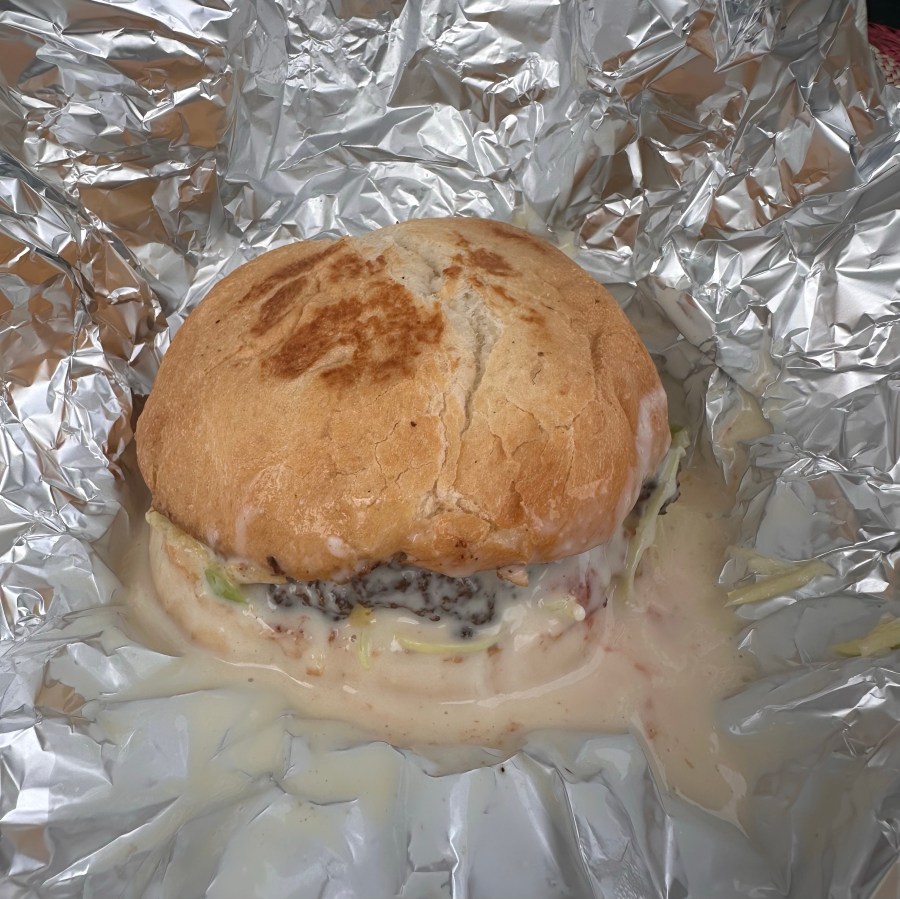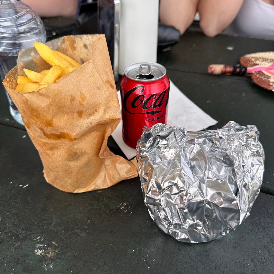 The “wet” cheeseburger was on a whole other level. Wrapped in foil, it came with a rich, flavorful sauce at the bottom—probably a blend of mayonnaise and coconut milk. The salad was pared down to just lettuce, but the sauce made up for it. This burger was a total surprise—one of the best I’ve had. It was simple, classic, and the sauce added a messy but worthwhile twist.