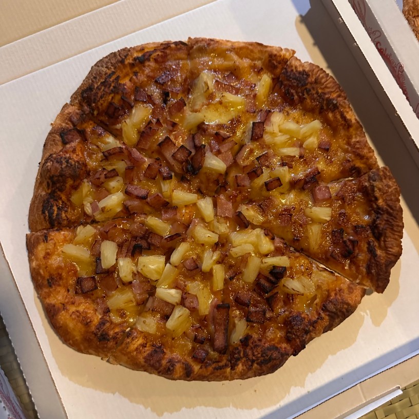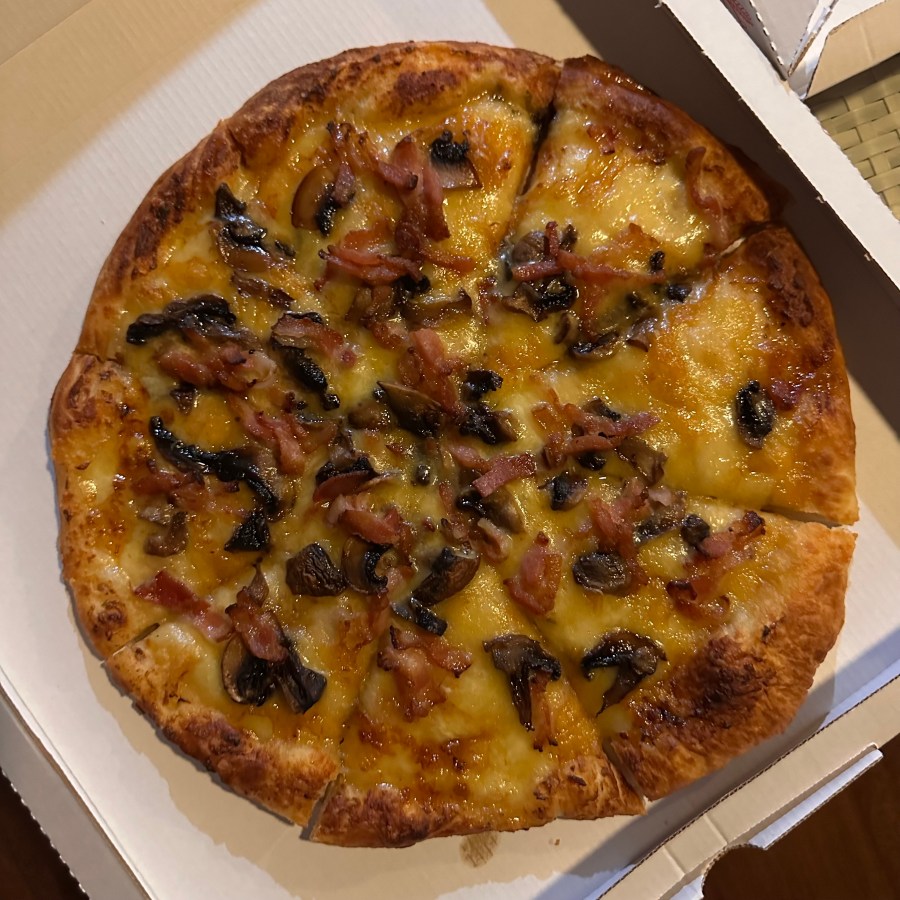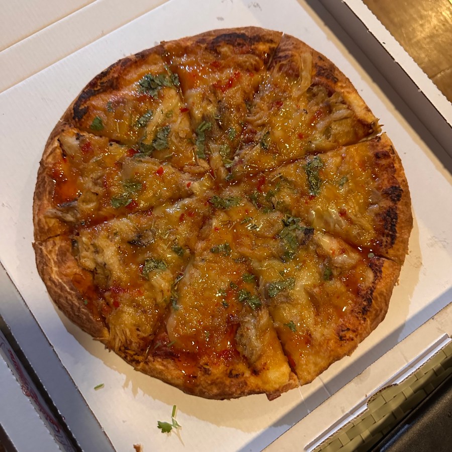 The pizzas were really good overall. The Hawaiian, a classic with pineapple, was surprisingly enjoyable, even though I’m usually not a fan of pineapple on pizza. The cheese and ham were high quality, which made a difference. My favourite was the Alfies pizza, which had alfredo sauce, mozzarella, grilled bacon, mushrooms, and spicy hot honey. I liked how the bacon was grilled beforehand, as it produced a stronger, more delicious flavour, while the mushrooms added a nice earthy touch with the honey and alfredo sauce. The Thai chicken pizza was also great, with the sweet chilli sauce complementing it well, although I wasn’t a fan of the coriander sprinkled on top.