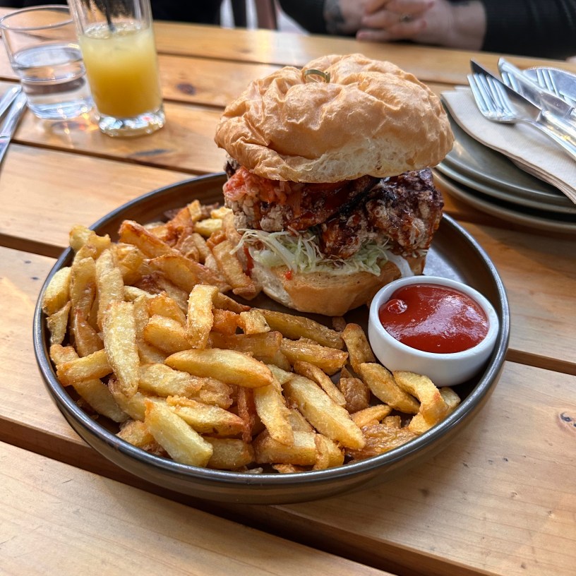 I had planned on ordering a small plate, but when someone suggested the Korean Fried Chicken Burger, I couldn’t resist—I’m a sucker for Korean Fried Chicken. The burger came with crispy fried chicken inside a brioche bun, topped with burger mayo, gochujang sauce, kimchi, and a side of thrice-cooked chips. The chips were flavorful and looked great, but they weren’t as crispy as I’d expected. The burger, on the other hand, was excellent, and I particularly enjoyed the kimchi. However, I felt it could have used a little more gochujang sauce to bring out the full flavor.