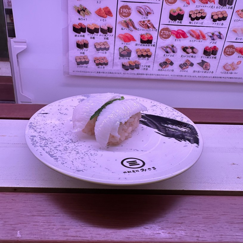 After some shopping, we realised we needed to find somewhere to eat. Time was running out, though, as it was New Year’s Eve, and even though it was only 7 PM, many places were already closing. We left the train station and ended up at a sushi train restaurant.