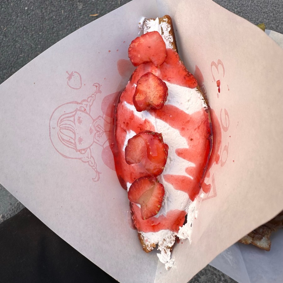 The jam strawberry sandwich was another masterpiece. It was filled with fresh cream and halved strawberries, topped with a drizzle of strawberry coulis. The contrast between the crisp exterior of the bread and the soft cream and strawberries was delightful. It was a wonderful way to finish the meal—a simple yet elegant treat.