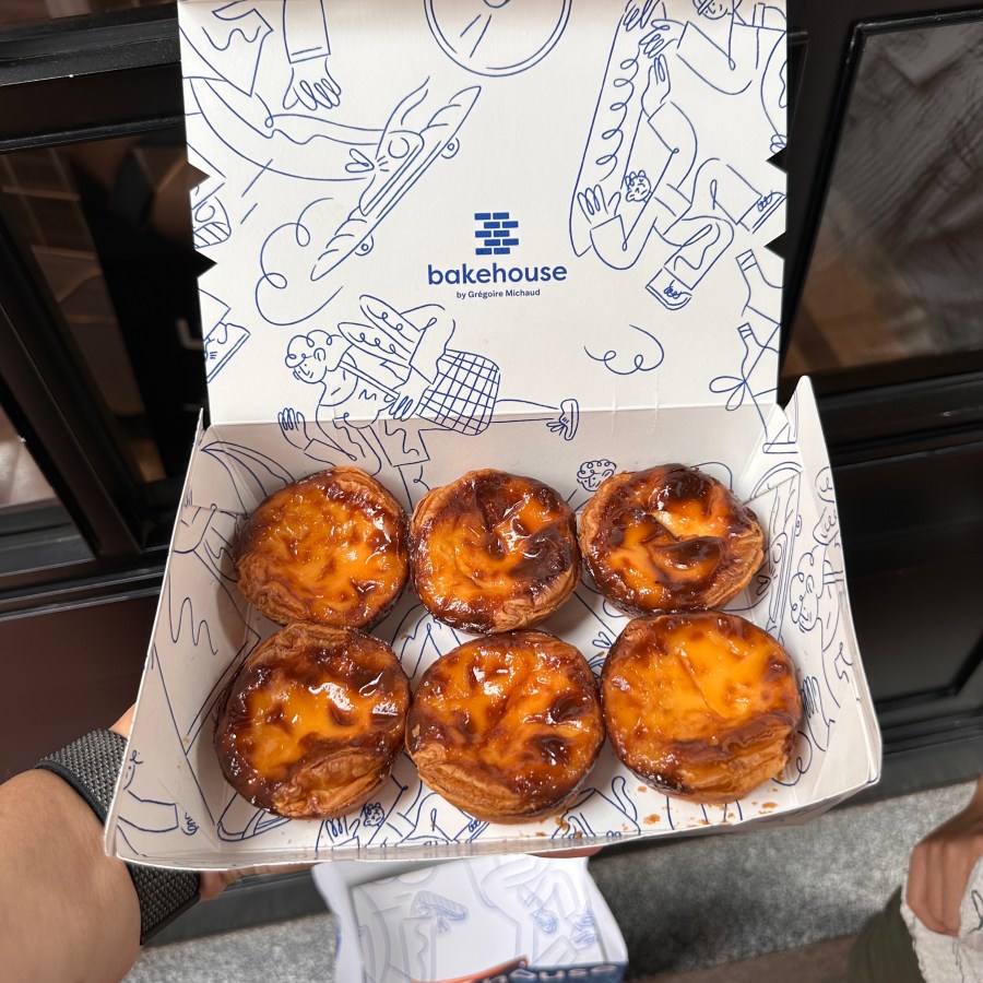 I finally made it to Bakehouse. Although the bakery has several branches across Hong Kong, I visited the Tsim Sha Tsui location first. Unfortunately, their famous sourdough egg tarts had already sold out, and the wait for the next batch was too long. Instead, I opted for the mango sago bolo bao and the salted egg and caramel custard bolo bao. The next day, I managed to stop by the Causeway Bay outlet, where I bought half a dozen of their renowned sourdough egg tarts and a tiramisu danish.