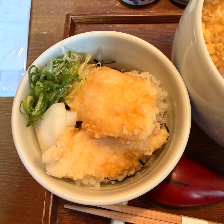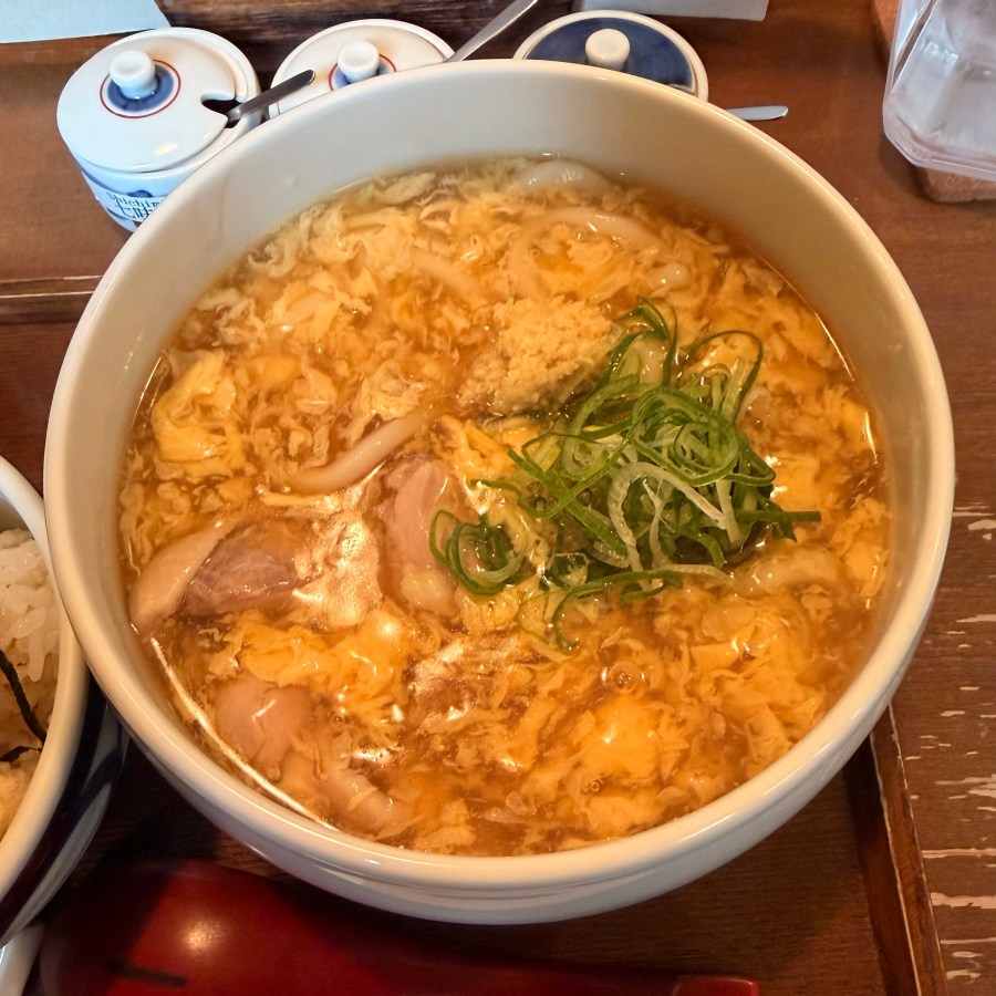 I waited about 20 minutes before getting a seat. I ordered the Tanba-Dori Ankake Udon—udon with Kyoto’s local Tanba chicken and egg in a thick, starchy broth—along with some tempura chicken over rice.