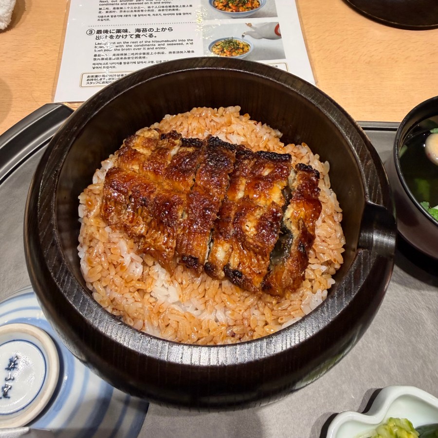 When the dish arrived, I was given instructions on how to eat it, as hitsumabushi is traditionally enjoyed in three different ways. The first is to simply mix the eel into the rice and eat it as is, which was already very good. The second variation involves adding the condiments provided—spring onions, nori, a basil-like herb, and fresh wasabi. This turned out to be my favourite way to eat it. The final variation is to pour the clear soup over the rice, eel, and condiments, making it more like a tea-style rice dish. It wasn’t bad, but I wasn’t really in the mood for soup in my rice this time.